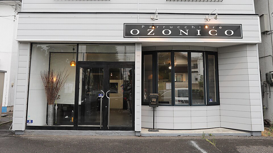白樺公園の北向い新緑通りの白いOZONICO看板。